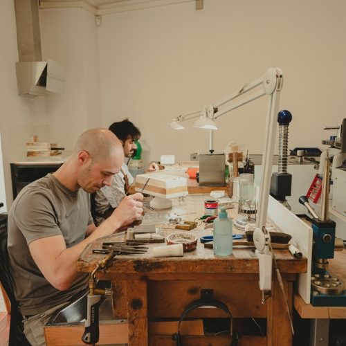 Crecí entre herramientas, metales preciosos y el ejemplo de nuestro padre, que nos enseñó a entender la joyería como un oficio lleno de respeto por el detalle y por el tiempo necesario para crear algo auténtico. Hoy trabajo junto a mi hermano Xabier en nuestro propio estudio, donde diseñamos y elaboramos piezas únicas inspiradas en la simbología vasca y en la tradición artesanal.
